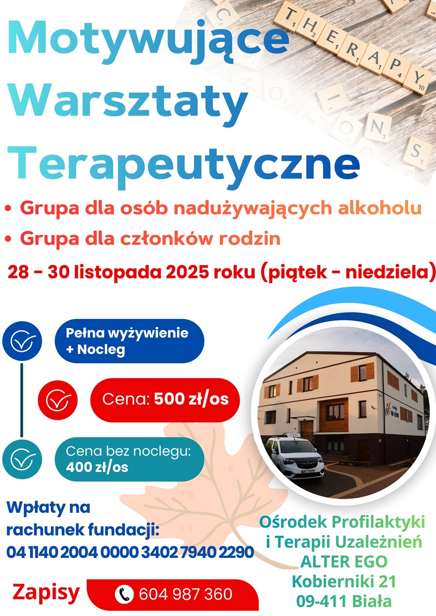 Ośrodek ALTER EGO to miejsce, które specjalizuje się w pomocy osobom zmagającym się z uzależnieniami oraz ich rodzinom. Oferta obejmuje różnorodne formy terapii, w tym detoksykację, terapię indywidualną i grupową oraz specjalistyczne programy terapeutyczne dostosowane do potrzeb pacjentów.